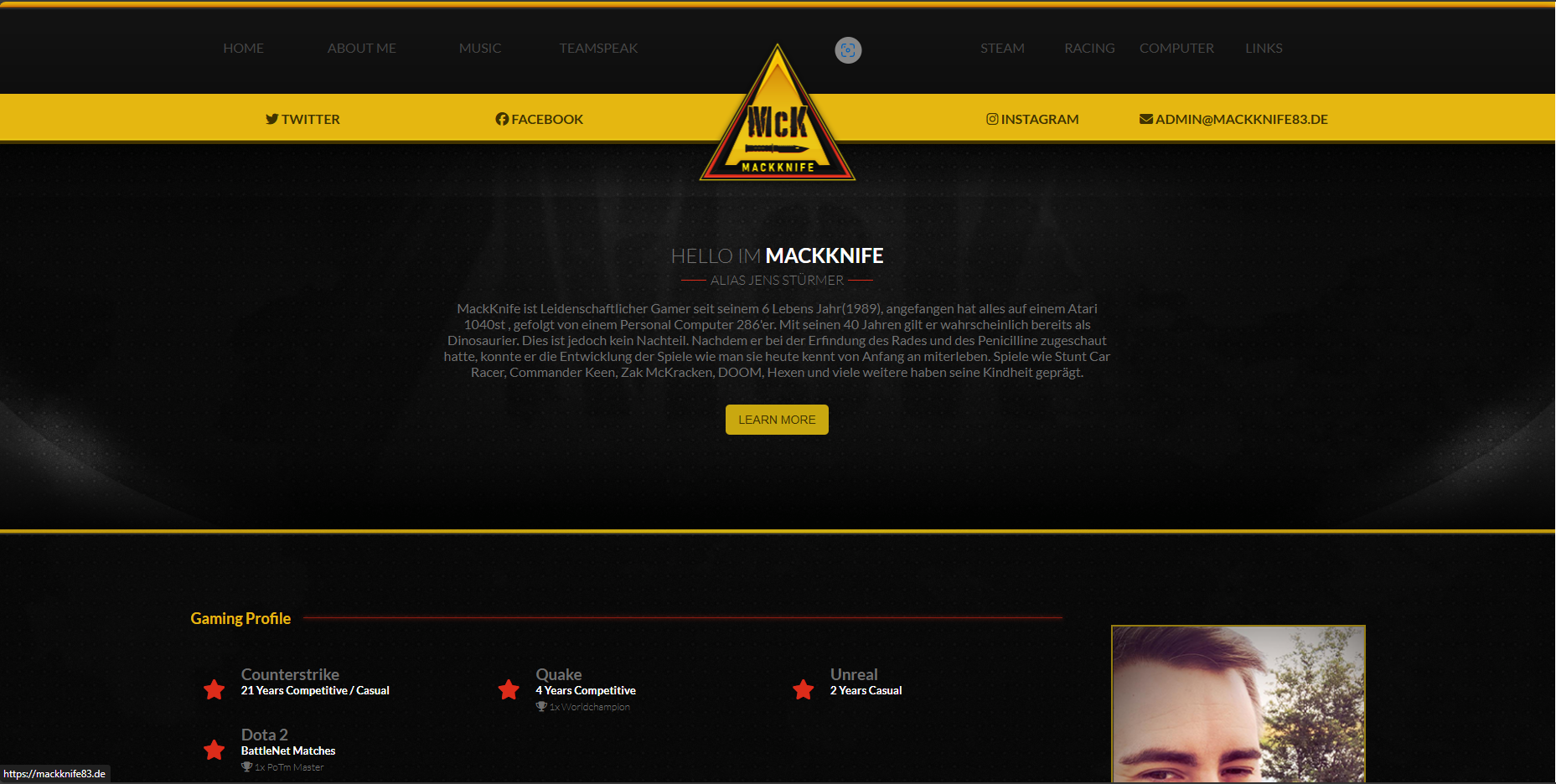 Jens “MackKnife” ist ein sehr guter Freund von mir, welchen ich schon mehrere Jahre kenne. Ich habe seine Website anhand eines vorgefertigten PSD-Designs in WordPress umgesetzt und zudem verschiedene Steam-API-Funktionen integriert, wie etwa die abfrage der zuletzt gespielten Spiele.